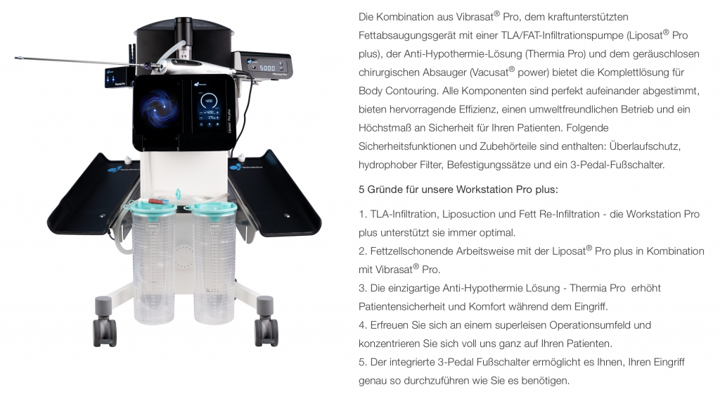 Um die Fettabsaugung möglichst schonend und effektiv durchzuführen, verwendet Dr. Knam eines der besten Geräte auf dem Markt, welches von zahlreichen führenden Experten auf diesem Gebiet eingesetzt wird. Die Workstation Pro plus von Moeller-medical.